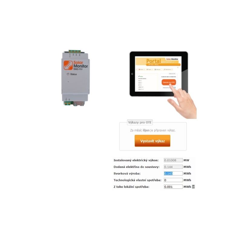 To je hlavním cílem projektu Solar Monitor - OTE. Již žádné internetové kalkulačky nebo excelovské tabulky a ruční přepis hodnot. Naše řešení posílá data přímo do portálu CS OTE. Využívá k tomu jednoúčelový modul Solar Monitor RM určený pro vzdálený odečet elektroměrů.